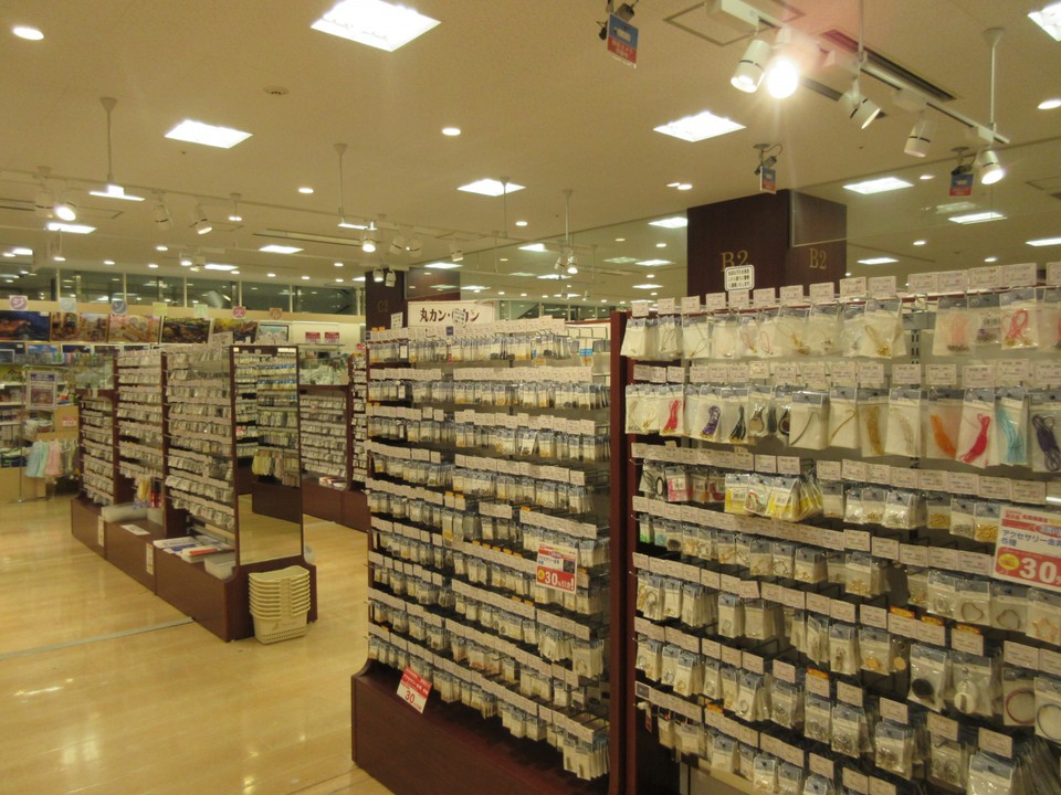 手作りホビーの材料を幅広く取り扱う老舗の大型専門店です。豊富な生地や和洋裁材料、毛糸やボタン、ビーズ、手芸・工芸材料などのほか、画材や文具、書道用品の取り扱いもあります。