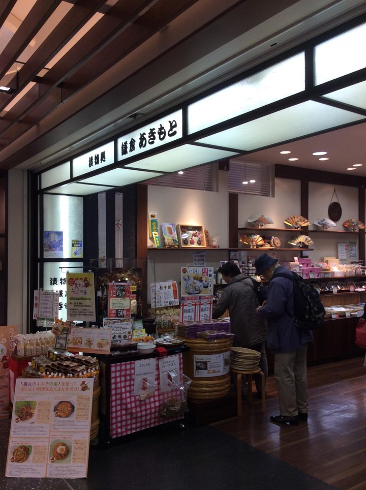 古都鎌倉の二ノ鳥居前に本店がある漬物店の支店。旬の野菜の浅漬けから、独特の風味が生きた本漬けまで、さまざまな漬物が豊富にそろいます。味見をしてから購入できます。
