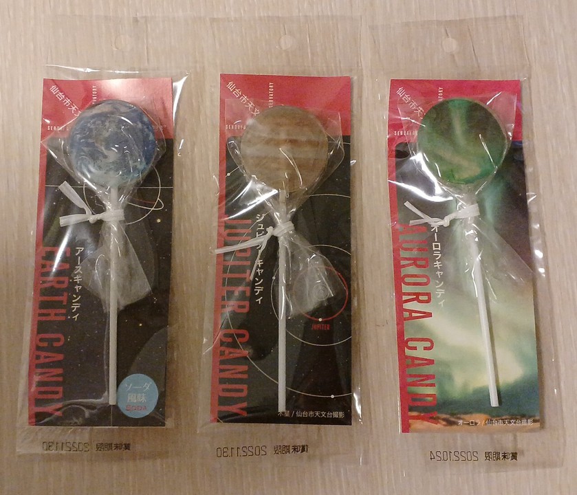 仙台市にある天文台。ミュージアムショップでは、月や木星など、美しい惑星の写真がプリントされたキャンディが大人気です。「アースキャンディ」は美しい青い地球のキャンディーです。